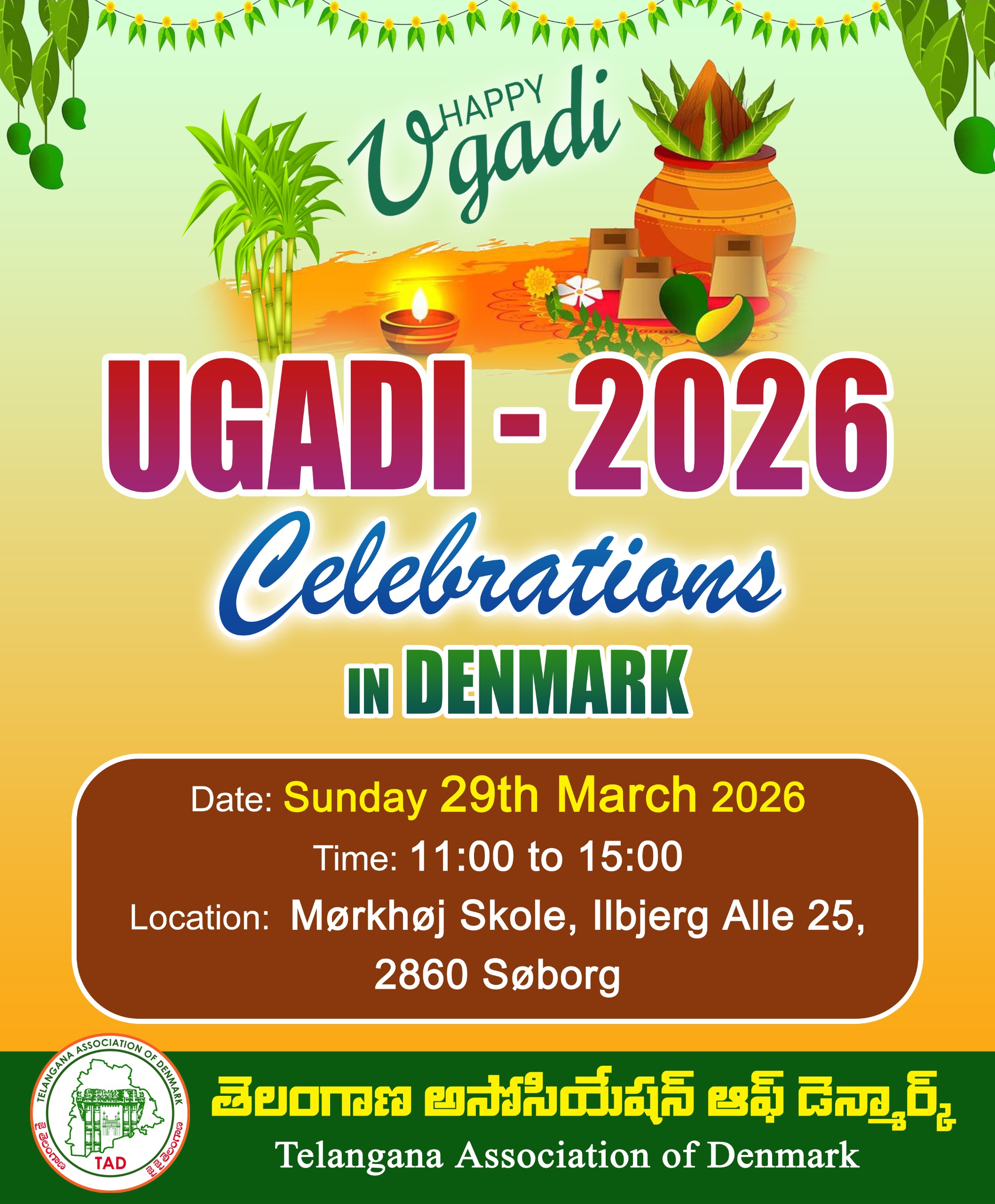 Telangana Association of Denmark (TAD) is a non-religious, non-profit and non-political association that encourages Telangana people around Denmark to actively participate in the progress of the community and integrate with Danish culture. TAD preserves the culturally rich Telangana identity and promotes classic and ancient Telugu language to the next generations. TAD celebrates Telangana festivals in an integrated & inclusive manner and promotes rich heritage and family values to next generations. Support charity in the country of residence (Denmark) and in the State of Telangana in India. Facilitate business and professional networking.